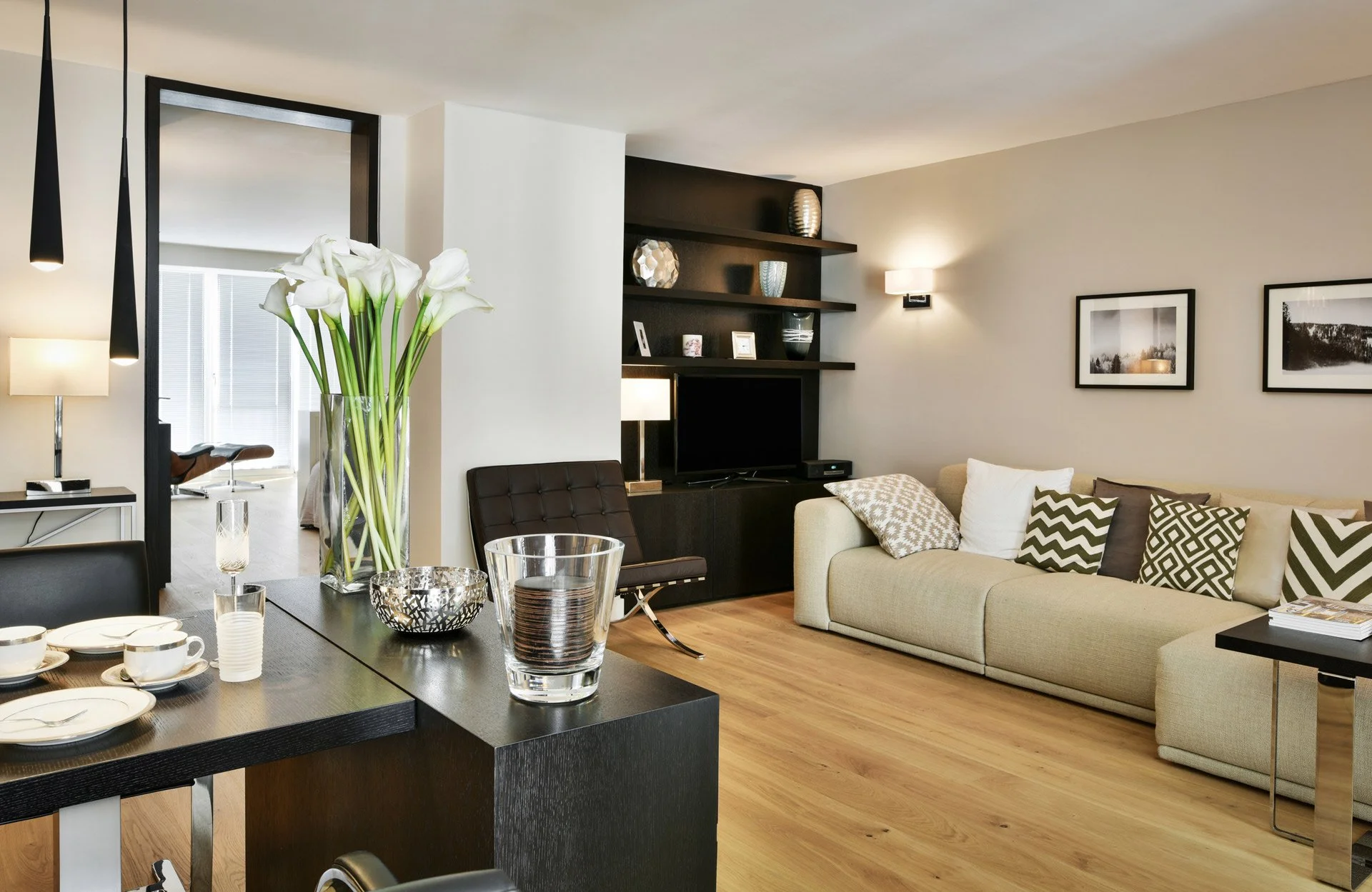 Im Zuge eines umfassenden Innenausbaus wurde aus der vorherigen Dreizimmerwohnung eine offen gestaltete Zweizimmerwohnung, die durch Ihre hellen und offen gestalteten Räume eine einladende Atmosphäre kreiert. Ein früherer Wintergarten, der vorher kein gut genutzter Wohnraum war, wurde im Rahmen der Umbauten zum Wohnraum ergänzt. Somit gewinnt das heutige Schlaf- und Arbeitszimmer an Größe und an Licht. Bei der Stadtwohnung vereint sich ein Mix aus schlichter Moderne und wohnlichem Design.